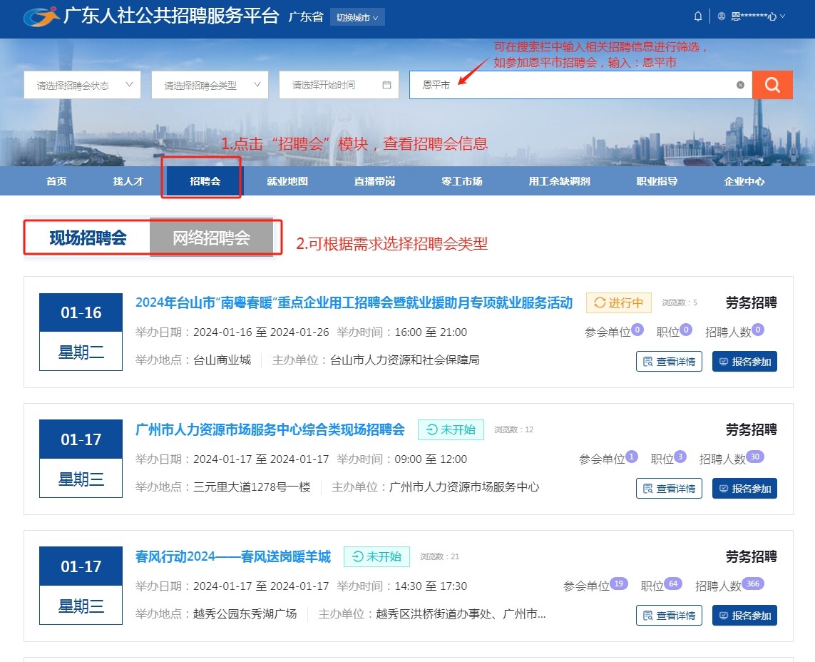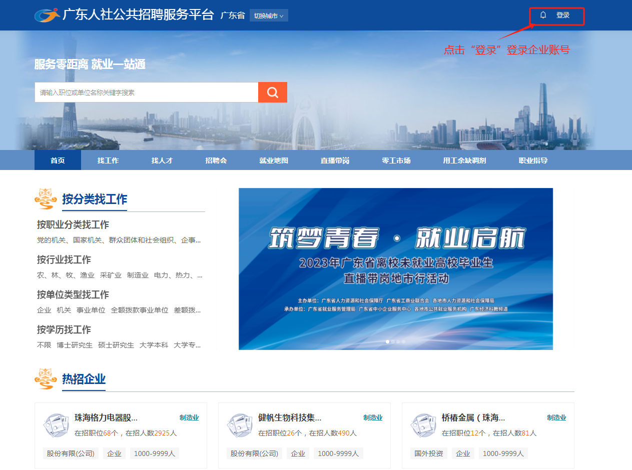 广东人社公共招聘服务平台招聘信息发布、招聘会报名