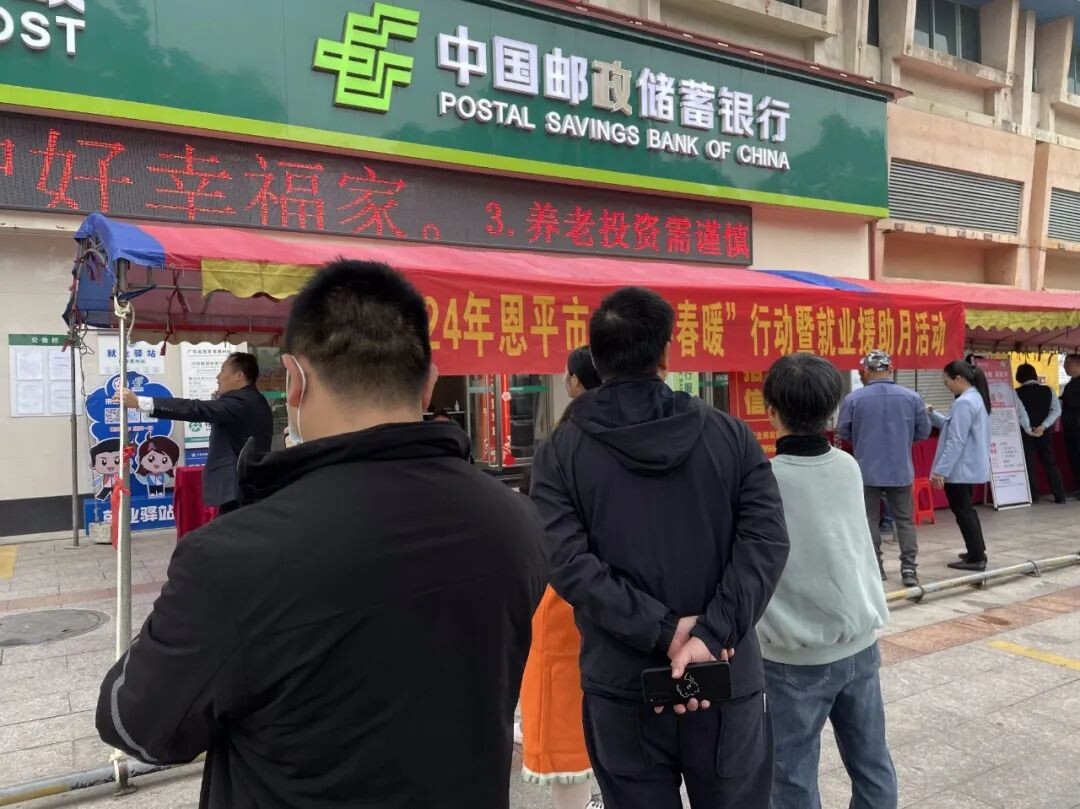 1月31日,不少市民在冯如广场附近的中国邮政储蓄银行投递简历、咨询求职。这是由恩平市人社局就业服务中心打造的首个“就业驿站”,旨在向更广泛的人群推广就业信息,让更多人实现高质量就业。