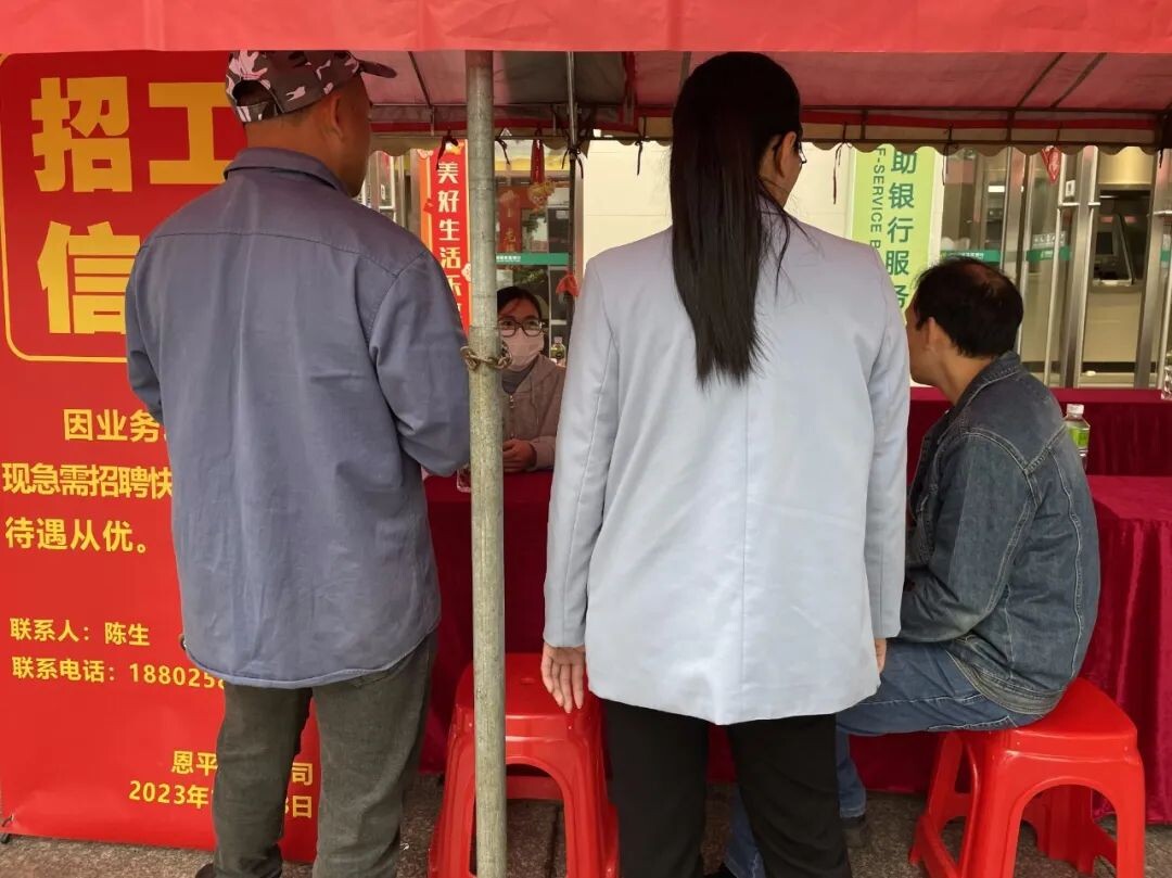 为更好地引导和促进各类求职人员就业,服务企业需求构建和谐稳定的就业新局面,现场还举办“2024年恩平市‘南粤春暖’恩洲就业援助招聘活动”。不少企业到场参与招聘,吸引相关人员到场。据统计,参加本次招聘活动的企业7家,提供招聘岗位38个,需求人数299人,进场应聘人数155人,初步达成意向78人。