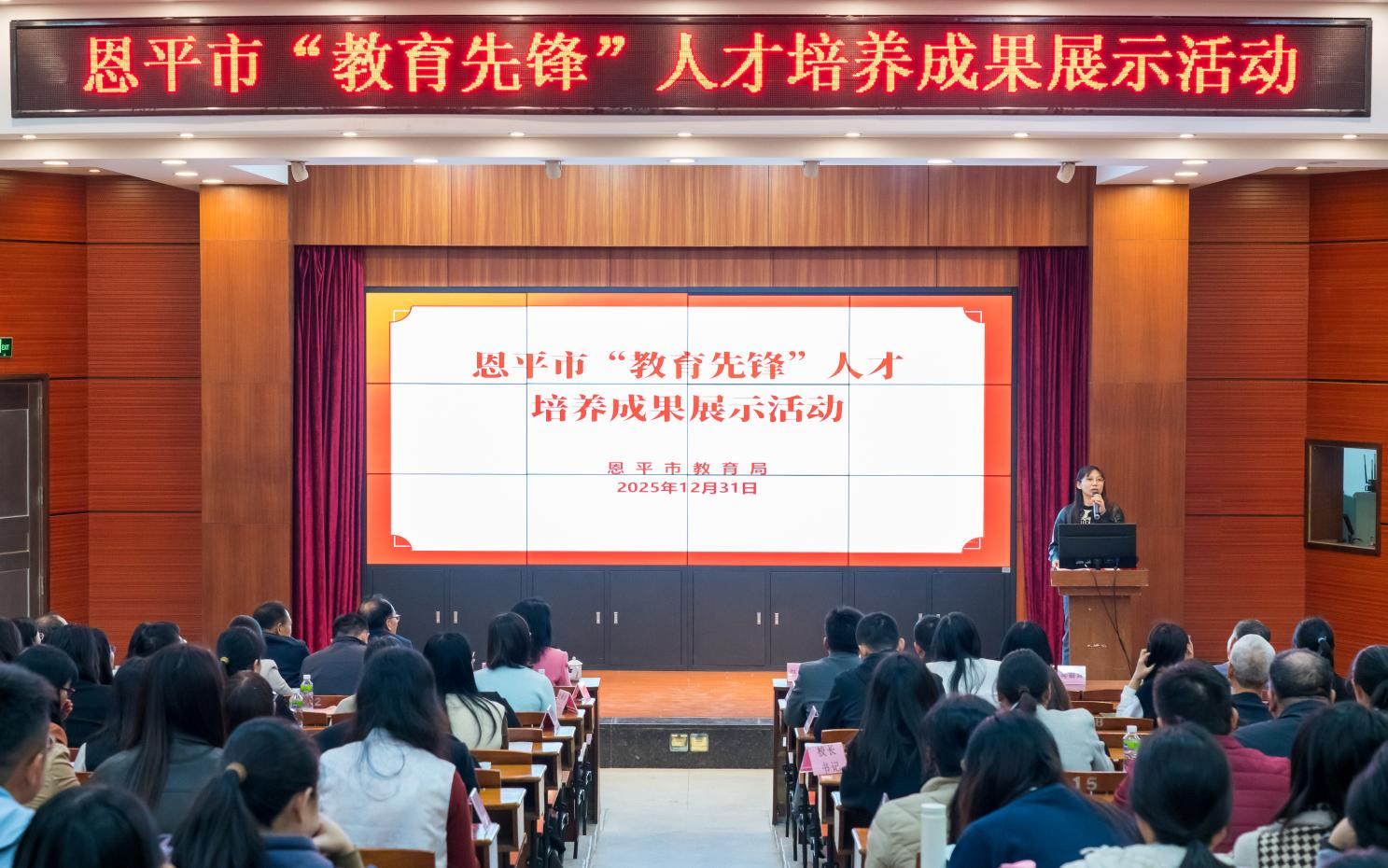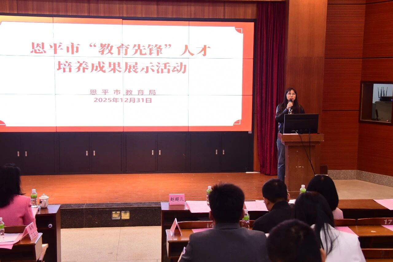 岁末盘点收获丰,先锋引领气象新。2025年12月31日,恩平市“教育先锋”人才培养成果展示活动在鳌峰中学隆重举行,全面总结三年人才培养成效,擘画教师队伍建设新蓝图。市人民政府副市长赵超儿,市委教育工委书记、教育局局长梁素贞,市教育局副局长唐立伟,全市各中小学书记、校长及18个学科培养基地的负责人、导师和教育先锋学员代表齐聚一堂,共同见证这一重要时刻。