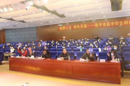 本次辩论赛主题为“健康人生,绿色无毒”。赛事共分为两场,第一场辩论双方学校是恩城中学和华侨中学,他们的辩论立场分别是禁毒教育主要依靠学校和禁毒教育主要依靠家庭;第二场辩论双方学校是恩平一中和恩平黄冈实验中学,他们的辩论立场分别是禁毒工作执法打击更重要和禁毒工作预防教育更重要。