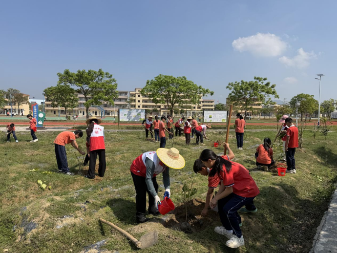 春风送暖,植绿正当时。在第48个植树节来临之际,恩平市各中小学以植树节为契机,开展形式多样的植树护绿、劳动实践活动,将生态文明教育与劳动教育深度融合,让学生在亲手劳作中播撒绿色希望,感悟劳动价值,为绿美恩平建设注入校园青春力量。