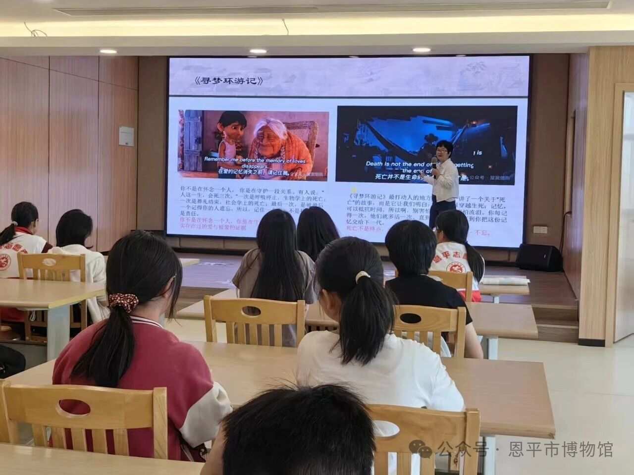 动画电影《寻梦环游记》的联动环节,为活动注入温暖力量。在观看影片片段后,讲解员与青少年共同探讨“死亡与记忆”的主题,提出“爱,是这个宇宙最终极的能量”。当电影中“爱穿越生死、记忆抵抗时间”的理念,与恩平古墓葬“慎终追远”的传统相遇,青少年深刻领悟到:对祖先的缅怀、对家族的眷恋,本质上是“爱”的延续;保护古墓葬,就是守护这份跨越时空的爱与记忆,让“死亡不是终点,遗忘才是”的认知转化为传承文化的自觉。