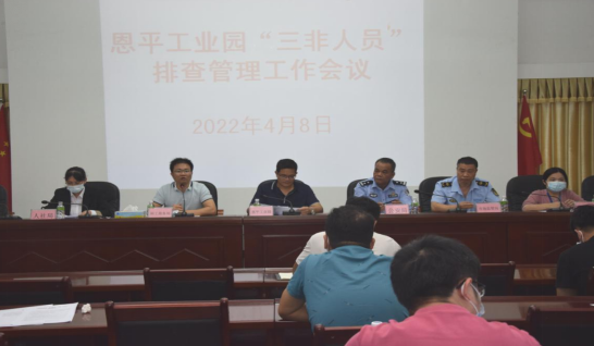 为巩固来之不易的疫情防控成果,保护人民群众生命安全和身体健康,4月8日,恩平工业园召开“三非人员”排查管理工作会议。会议分3场次共120多名企业代表参加,恩平工业园、市科工商务局、市人社局、市疾控中心、河南派出所、河南市场监督所等单位代表出席会议。
